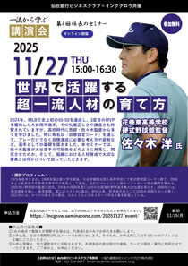 本セミナーでは、佐々木監督が大谷選手の可能性をどのように発見し、開花させたのか。そして、組織における人材育成で大切な要素とは何かについて語っていただきます。