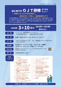 ◎◎仙台銀行ビジネスクラブ主催「はじめてのOJT研修 部下育成セミナー」開催のお知らせ◎◎
